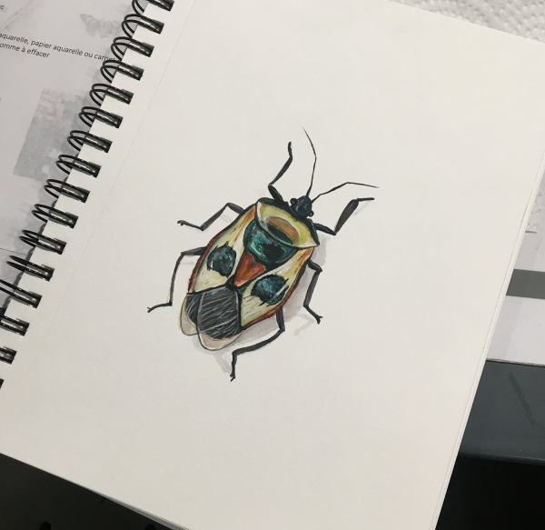 En 2022, j'ai eu vraiment la chance de collaborer avec les Amis de l'insectarium de Montréal en offrant deux séries d'ateliers de peinture naturaliste dans leurs salles de découvert. Nous avons regardé les fondaments de dessin et de peinture en aquarelle, et nous avons eu comme inspiration les insectes sous microscope, les insectes en plein diversité dans le Dome des spécimens, et les insectes en action dans le vivarium. Après chaque séance d'observation et de peinture avec les participantEs passionnéEs de la nature, je me sentais remplis de couleur et de beauté dans l'esprit. Merci à l'insectarium, Les Amis de l'insectarium et toutes les participantEs.