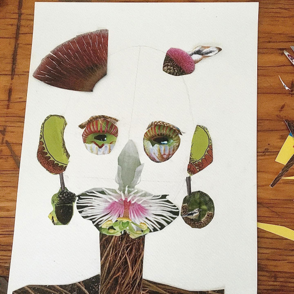 Dans ce atelier d'auto-portrait et de collage, nous avons créé les portraits vegetaux avec le jardin famille de On Sème, Le Virage - Campus MIL