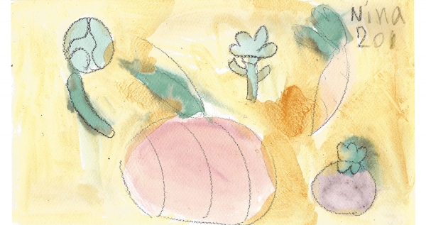 En parallèle, nous avons pressé des légumes (produits de ce travail microscopique qui amènent la nutrition aux humaines et autres espèces) pour faire la peinture en plein de couleurs vives et comportements magiques.