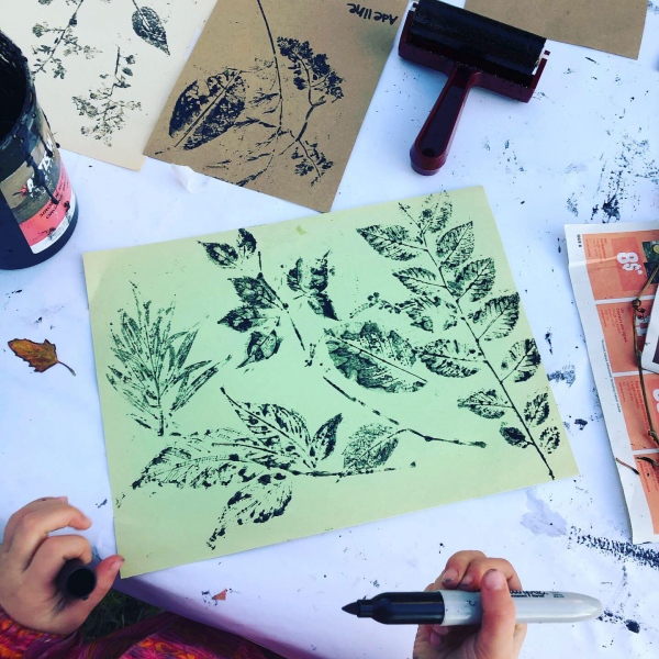 Lors d'une journée pour les familles au Champ des possibles, site urbain de biodiversité, j'ai offert un atelier d'estampes pour les tout-Petits. Ils ont appris comment faire et manipuler les estampes à l'encre et des rouleaux, les caractéristiques et diversités des plantes trouvées en ville, et que c'est possible de faire de l'art avec des matériaux ordinaires trouvés à la maison.